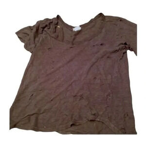 ZARA VINTAGE EXTREME DISTRESSED V NECK TEE SIZE SMALL CHARCOAL GRAY