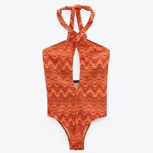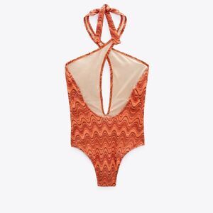 ZARA WAVE PRINT HALTER SWIMSUIT NEW