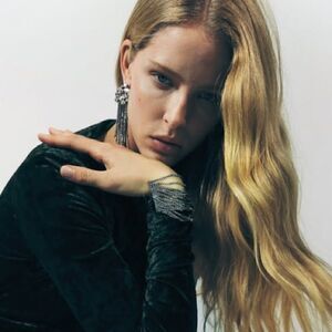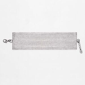 Wide bracelet with rhinestone appliqués. Lobster clasp closure.