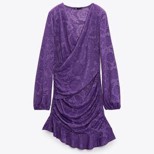 ZARA WRAP FRONT DRESS PURPLE LILAC JACQUARD