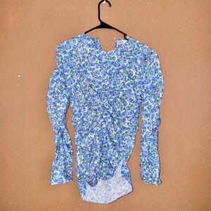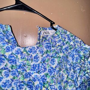 Elevate your style with this stunning ZARA blouse! The beautiful blue floral print adds a touch of elegance, while the long sleeves provide warmth and coverage. The ruched detailing creates a flattering silhouette that accentuates your curves. Made from a light and comfy material, this blouse is perfect for all-day wear. Pair it with jeans or a skirt for a chic and effortless look.