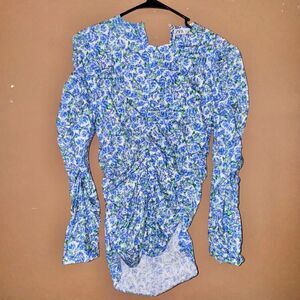 ZARA Women's Floral Print Ruched Blouse Blue Size Small