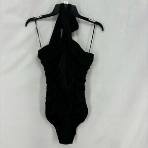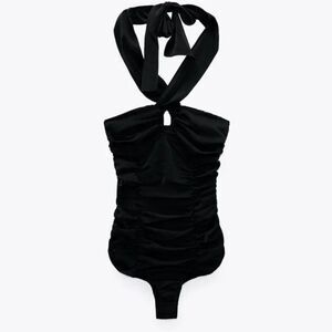 ZARA Women’s Medium Black Halter Ruching Bodysuit Tank Top One Piece
