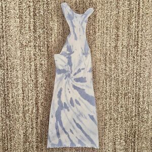This Zara halter dress is a must-have for your wardrobe! The blue and white tie-dye pattern is super cute and perfect for a casual day out or a summer party. The ribbed fabric adds a touch of texture and style to the dress.