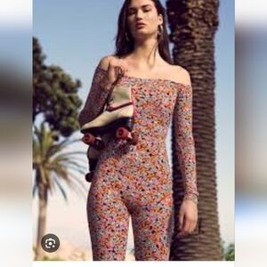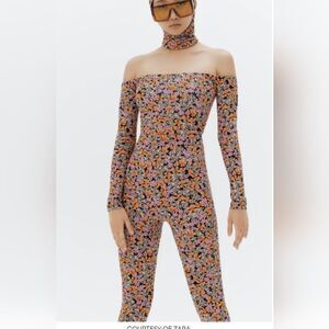 ZARA X PURPLE MAGAZINE Floral Off Shoulders One Piece Body Jumpsuit Size M