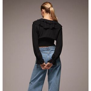 V-NECK TOP WITH RUFFLE TRIMS AND LONG SLEEVES. ELASTIC SMOCKING DETAIL AT THE HEM. FRONT METAL ZIP FASTENING.