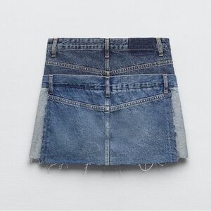 ZARA ZW Denim Mini Skirt Double Waisted Upcycled Ultra Mini Size Small