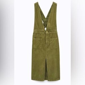ZARA khaki corduroy pinafore midi cotton overall dress M