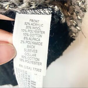 Oversized Gray black wool alpaca blend open knit front top with gold metallic threading.
