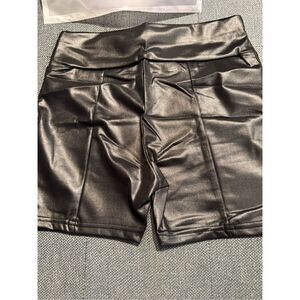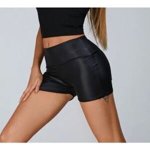 ZASUWA FEMALE GLOSSY PU FAUX LEATHER PEACH BUTT SPANDEX GYM BOOTY SHORTS
