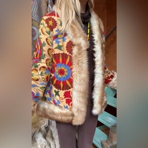 Handcrafted one-of-a-kind 70s style shearling embroidered Suzani coat. Lightly word. Good as new. Stunning colors and so cozy & warm. Made consciously with ethical craftsmanship.