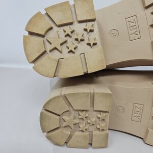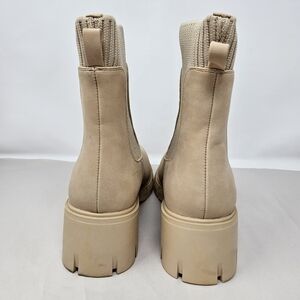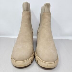 ZBY Ankle Boots Womens Sz 8 Beige Faux Suede Sock Pull On Chunky Sole Winter