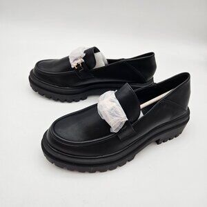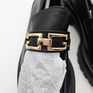 ZBY Black Vegan Leather Lug Sole Loafer Gold Tone Hardware Womens Sz 6.5 NEW
