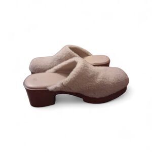 ZBY Clogs Size 9 Platform Fleece Beige Heels Winter Minimalist