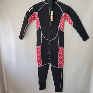 ZCCO Full Wetsuit Kids Size Medium Girls 3MM Neoprene Black Pink White NEW