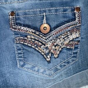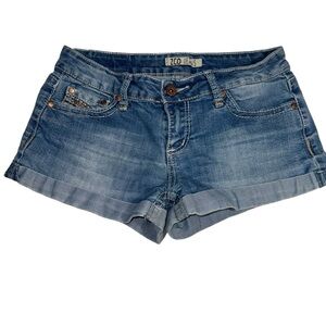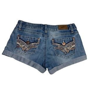 Junior size 9 tiny jean shorts with rhinestones and embroidered pockets