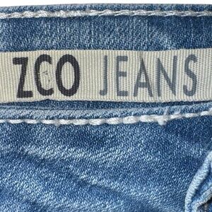 ZCO Women’s Jr Jean Shorts SZ 9 Faded Blue Cotton Open Flap Pockets Rhinestones