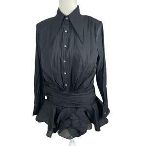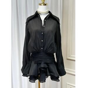 ZCRAVE Emma Dropped Waist Ruffled Organza Shirtdress Black Night Out Size Small