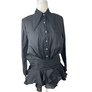 The Emma dropped waist shirtdress is made of soft organza fabric featuring a softly tiered mini skirt with cascading ruffles that offset the structured shirt-style top. Crystal like buttons, side zip closure. 100% cotton. Black. Size small. The top is somewhat oversized. Please see photos for measurements.