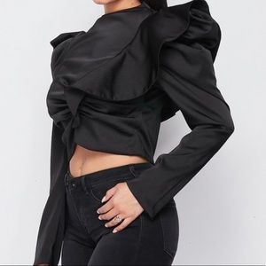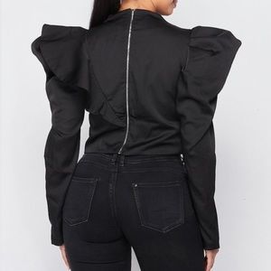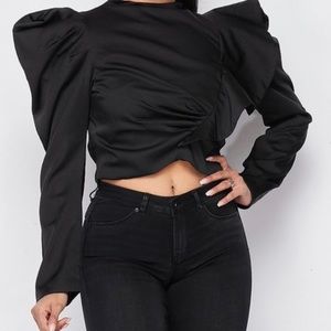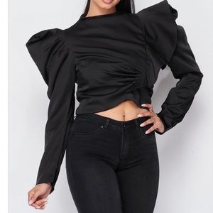Beautiful black casual long sleeve puffy shoulder top! Fits true to size! #zealous!