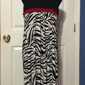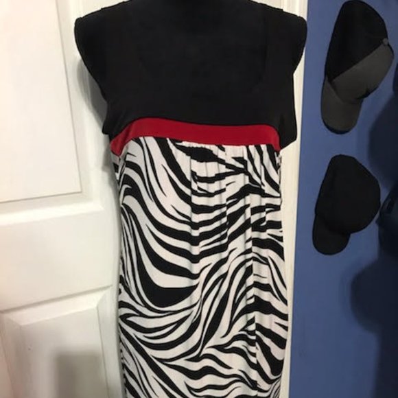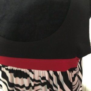 ZEBRA PRINTED DRESS WITH A RED TRIM. MADE BY EN FOCUS STUDIO. SIZE-14. ITS SWEET AND SEXY AND YOU WILL LOOK THE SAME IN IT.