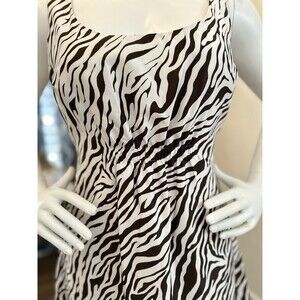 ZEBRA Print Sheath Shift Dress Sz 12 Smocked Front Sleeveless Animal Bubble Hem