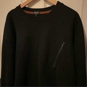 ZEGNA Black Sweatshirt Front Pocket Zip L