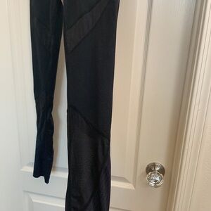 ZELLA Leggings in Black with Striped Mesh Panels - Size S. Excellent condition. Mesh panels on thigh and knee. Hidden waist pocket.