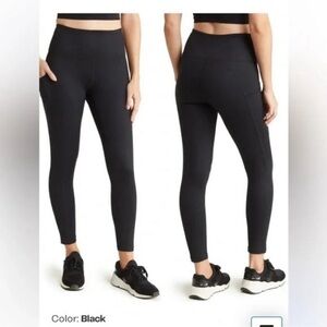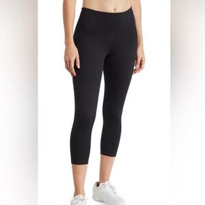 Zella sheer Drama crop leggings. Soft shirring accents the high-contrast cropped hems. Lean leggings cut from zeltek fabric that wicks away sweat to keep you more comfortable. Wide supportive waistband with hidden pocket that stashes key, cash, or card. Smooth seams. Machine wash; tumble dry low. 88% polyester 12% spandex