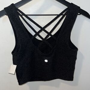 This low-impact bra is great for working from home or studio practice with its lightly supportive shelf-bra and comfy, partially recycled brushed jersey. Scoop neck Lined 85% recycled polyester, 15% spandex Machine wash, tumble dry