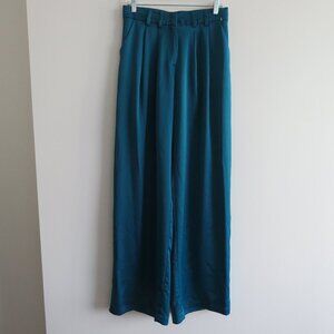 ZENA PRESLEY Teal Satin Palazzo Wide Leg Pants Drapey - Women's Size M