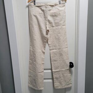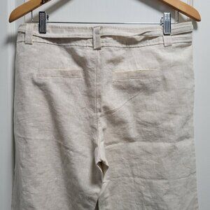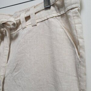 ZENANA Beige Linen Blend Wide Leg Pants Waist Drawstring Lounge Size L NWOT