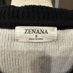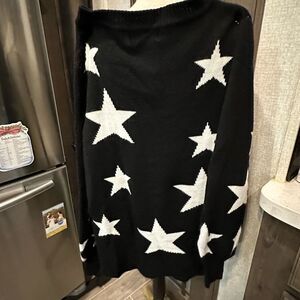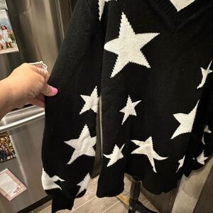 Stylish black sweater with white star pattern. V-neck design by ZENANA.