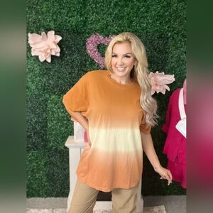 New ZENANA Dip Dye Short Sleeve Round Neck Top