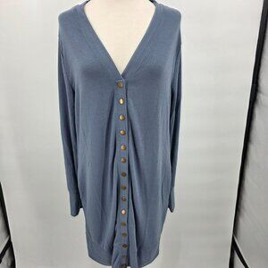 ZENANA Long Sleeve Snap Front Cardigan Sweater With Pockets Dusty Blue L NWT