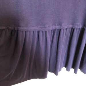 I’ve owned several of this brand’s clothing, and they’re affordable, wear well and last. Zenana Outfitters makes this ladies size SMALL crew neck, short sleeved, tunic-length top with flattering peplum. It’s in navy blue and has a raw hem. 95% rayon and 5% spandex, so it’s machine washable. (I would hang to dry to prevent clinging.) It’s soft and stretchy. The pit-to-pit measurement is 18” (without stretching), the length is 31” and the sleeves are 9”. So cute and flattering and perfect for Summer to throw on for anything. NOTE: I think this top is oversized because it fits me and I usually wear a large .So cute and NWOT!