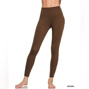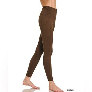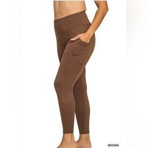 ZENANA SIDE POCKET BRUSHED MICROFIBER FULL LENGTH LEGGINGS
