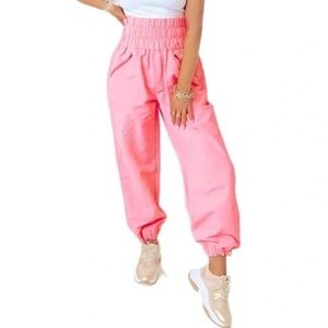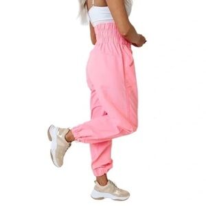 ZENANA Windbreaker High Waist Jogger Pants Zip Closure Side Pocket Bright Pink M