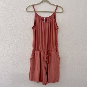 ZENANA • Women’s Coral Pink Romper Spaghetti Strap with Pockets