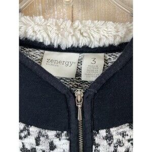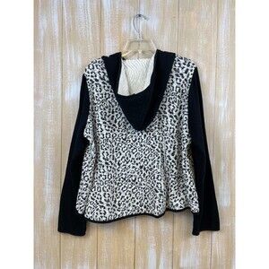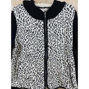 ZENERGY BY CHICOS Size 3 (XL) Black & White Animal Print Full Zip Hoodie Sweater