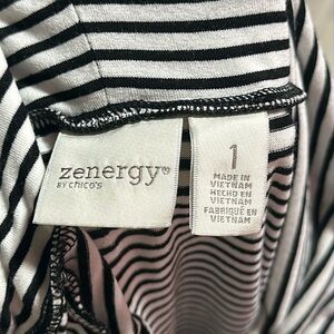 ZENERGY BY CHICO’S Sleeveless Black/White stripe Cowl Neck Maxi Dress Size 1