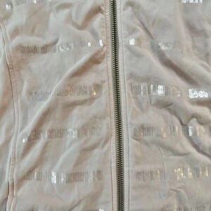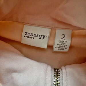 Beautiful track jacket from ZENERGY BY CHICO’S! Size 2, which is a Large according to the Chicos size chart (see photos). Blush pink, full zip, has soft clear sequin detail on front! Please see all photos as they are part of the listing description.