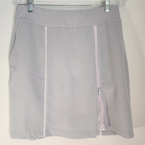 A game-winning look golf skort; with pink zipper and trim add feminine details