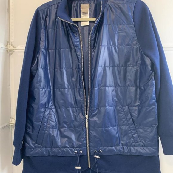 ZENERGY by CHICO'S 1 (M/8-10) Blue Drawstring Waist Zip Jacket Pockets EUC