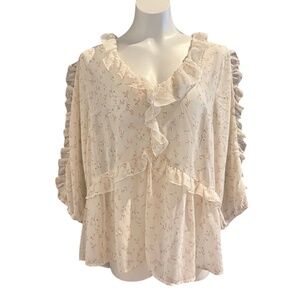 ZENOBIA NWT 1X Sheer Ruffle Peasant Blouse Off White Romantic Fairycore