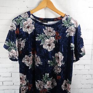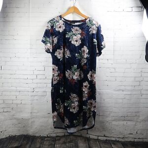 BLUE VELVET FLORAL SHORT SLEEVE ROUND NECK STRETCH MIDI SHIFT DRESS SIZE 3XL BY ZENOBIA PRE OWNED NO FLAWS