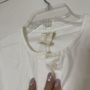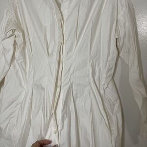 ZERO + Maria Cornejo ivory white long sleeve button down cotton dress US 4