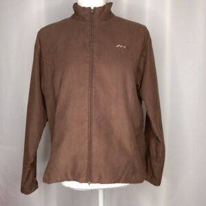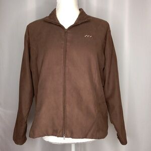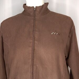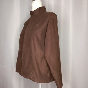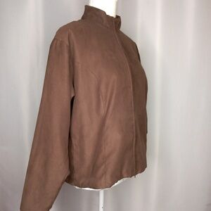 Ladies golf outerwear jacket, brown microsuede Anita, zips up, fully lined, Sz M.