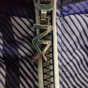 2 OUTSIDE POCKETS, LOOP ON SLEEVES TO CLIP SKI GLOVES, SOFT FUZZY LINING IN REVERSE INSIDE, NARROW SHOULDERS CHEST 42 INHES, LENGTH NECK TO HEM 26 INCHES(2lb)