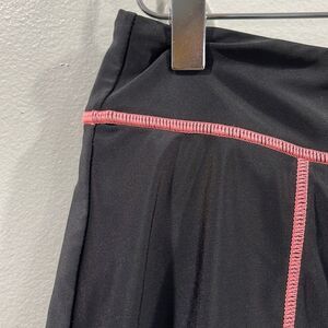 ZeroXposur Tankini Set. Sunsmart fabric tech. Tropical print racerback tank with multiple strap details. Padded bra cups. black Skort bottoms with pink stitching. Size medium 10/12
